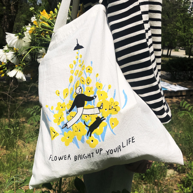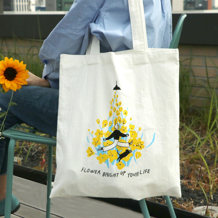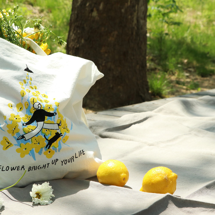 “당신의 시작을 응원합니다”라는 꽃말을 가진 프리지아를 ‘강한’ 작가 특유의 따뜻한 감성으로 그려낸 드로잉이 입혀진 에코백.